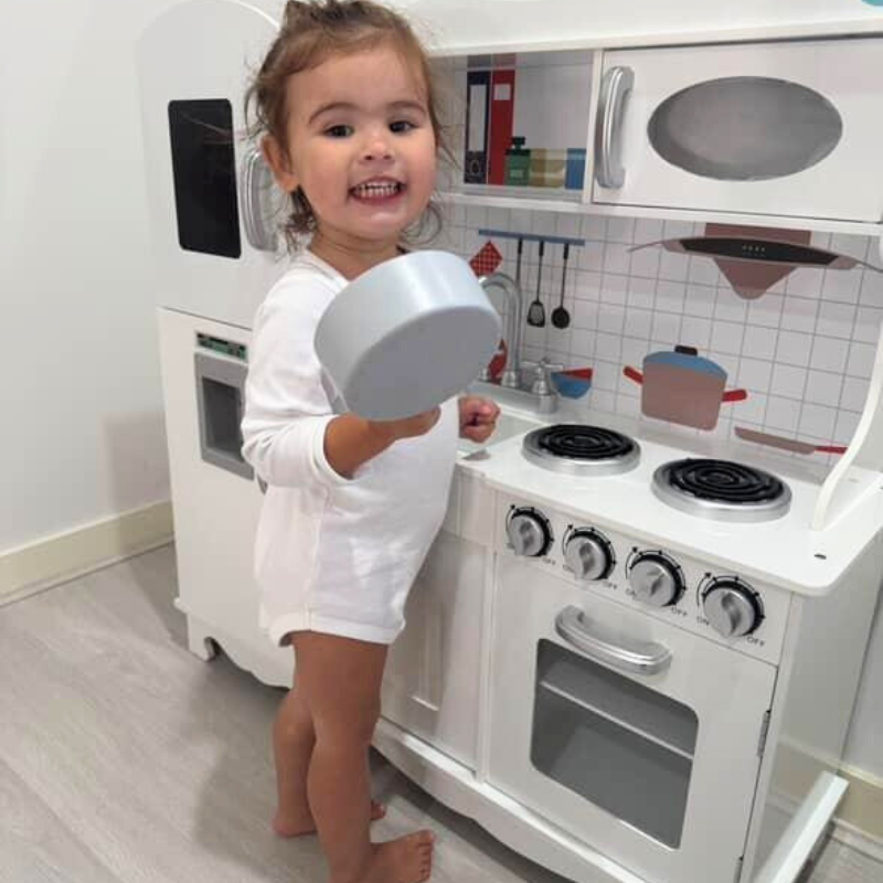 Full Product Name: Keezi Kids Kitchen Play Set Wooden Pretend Toys Cooking Children Storage White
